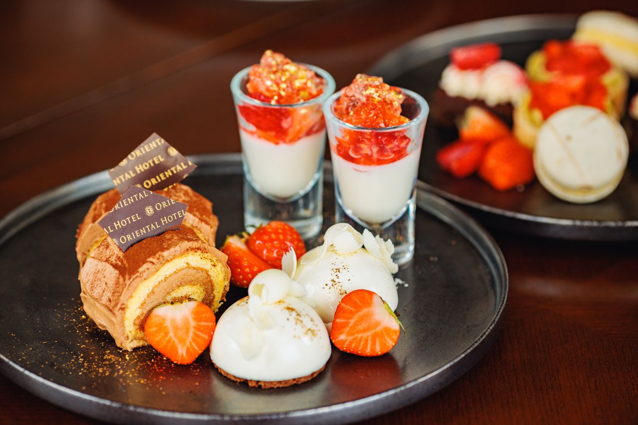 期間限定で国産の苺をたっぷり使用したストロベリーアフターヌーンティをホテル最上階フロアにあるThe Bar J.W.Hart でご用意。窓一面に広がる神戸の街並みを眺めながらアフタヌーンティーやパフェをお愉しみいただけます。